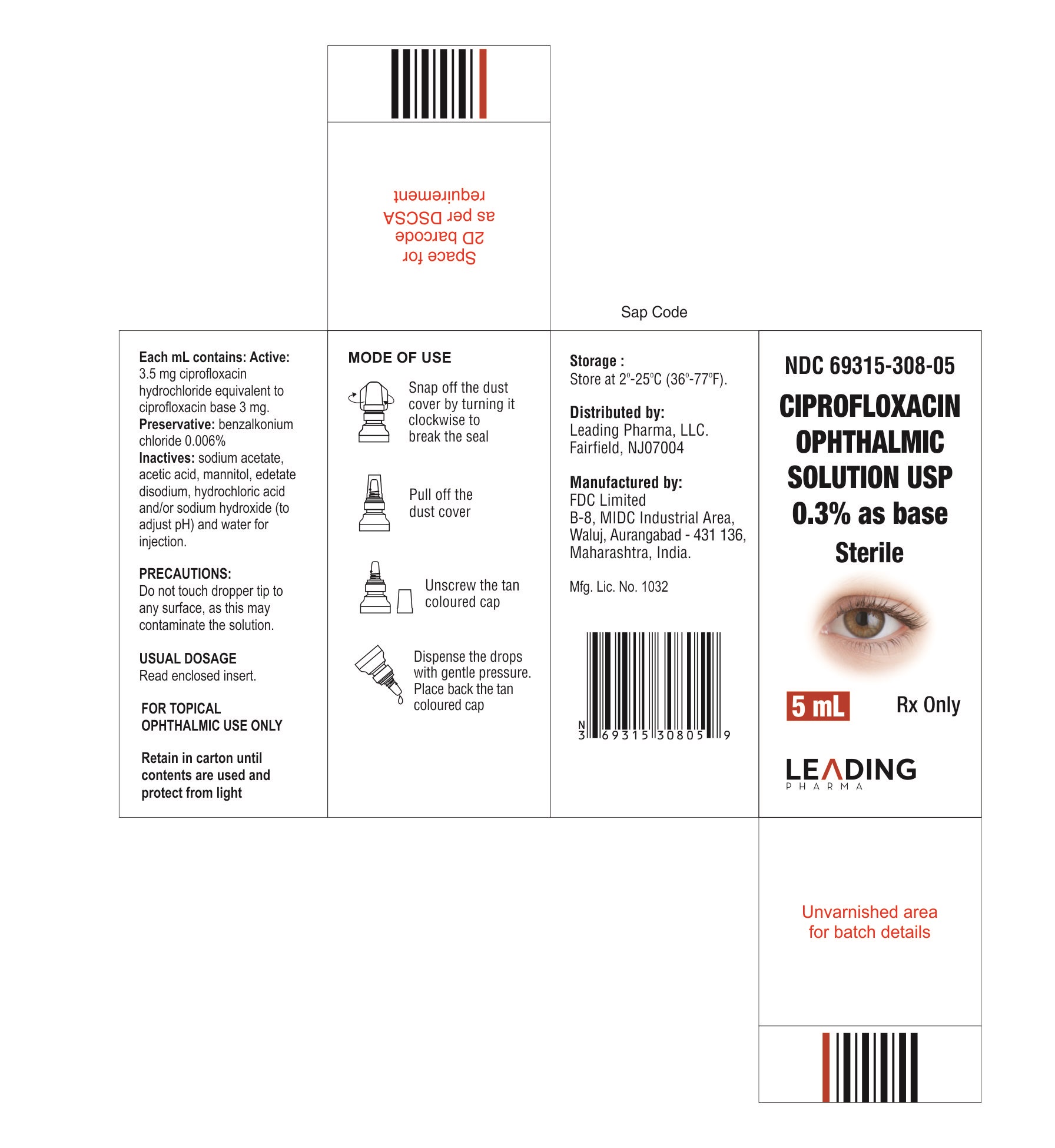 The following 10 images provide visual information about the product associated with Ciprofloxacin NDC 69315-308 by Leading Pharma, Llc, such as packaging, labeling, and the appearance of the drug itself. This resource could be helpful for medical professionals, pharmacists, and patients seeking to verify medication information and ensure they have the correct product.