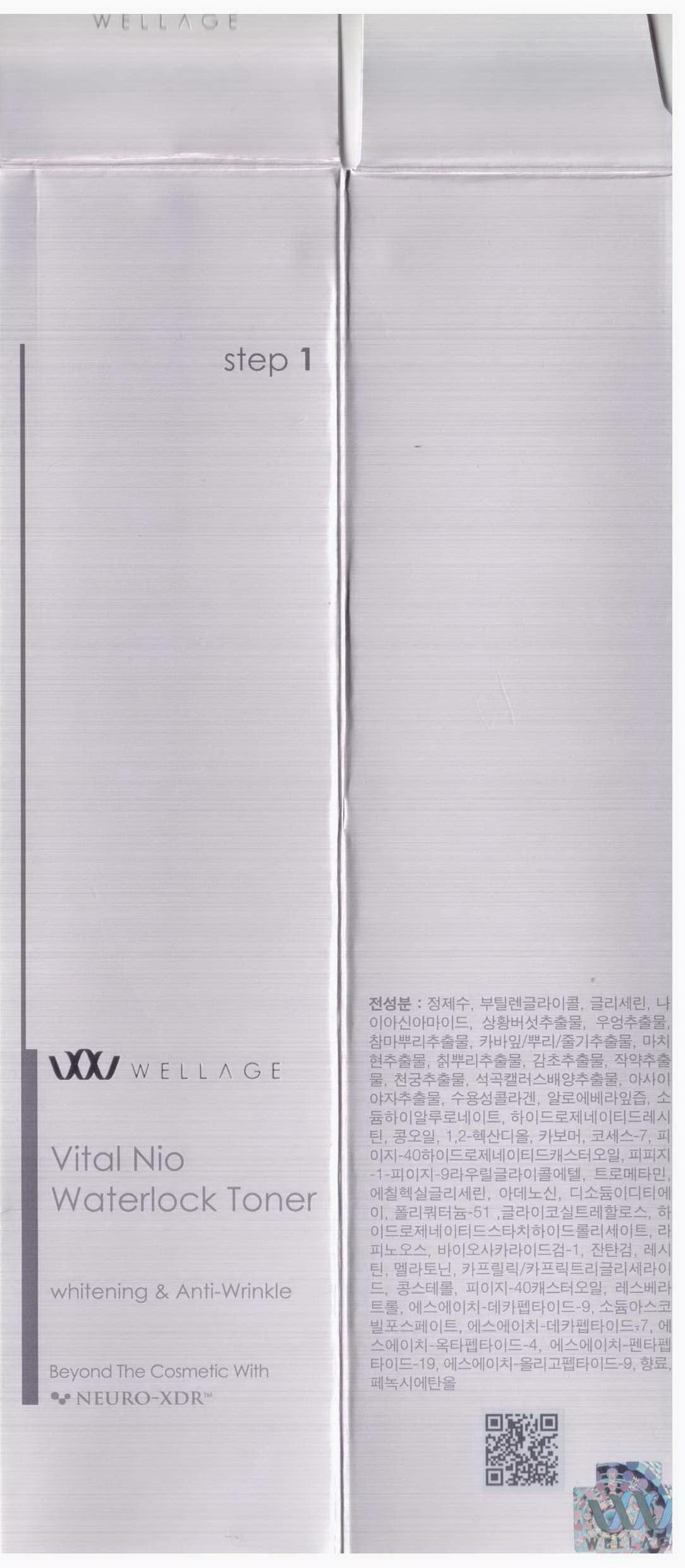 The following image provide visual information about the product associated with Wellage Vital Nio Waterlock Toner NDC 69346-1201 by Hugel Pharma Co.,ltd, such as packaging, labeling, and the appearance of the drug itself. This resource could be helpful for medical professionals, pharmacists, and patients seeking to verify medication information and ensure they have the correct product.