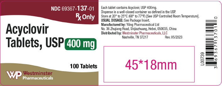 Acyclovir Tablets, USP 400 mg are available for oral administration as white round tablets, engraved Y212 on one side and plain on other. They are supplied as follows: