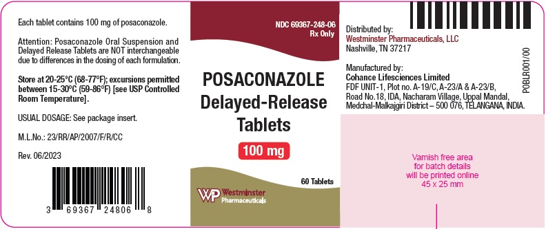 The following 2 images provide visual information about the product associated with Posaconazole NDC 69367-248 by Westminster Pharmaceuticals, Llc, such as packaging, labeling, and the appearance of the drug itself. This resource could be helpful for medical professionals, pharmacists, and patients seeking to verify medication information and ensure they have the correct product.