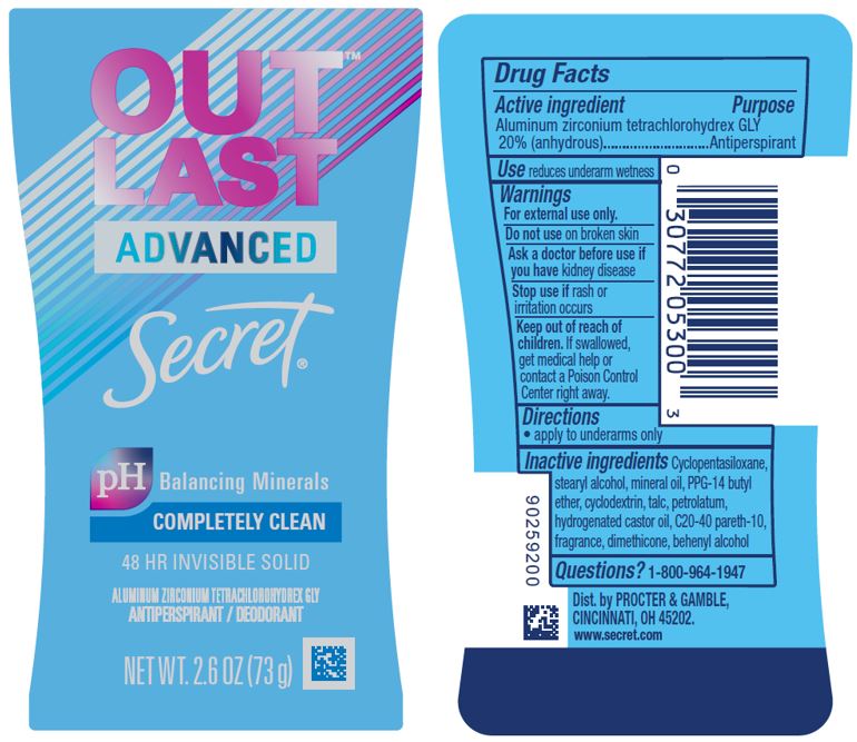 Secret Outlast Advanced Invisible Completely Clean Product Label