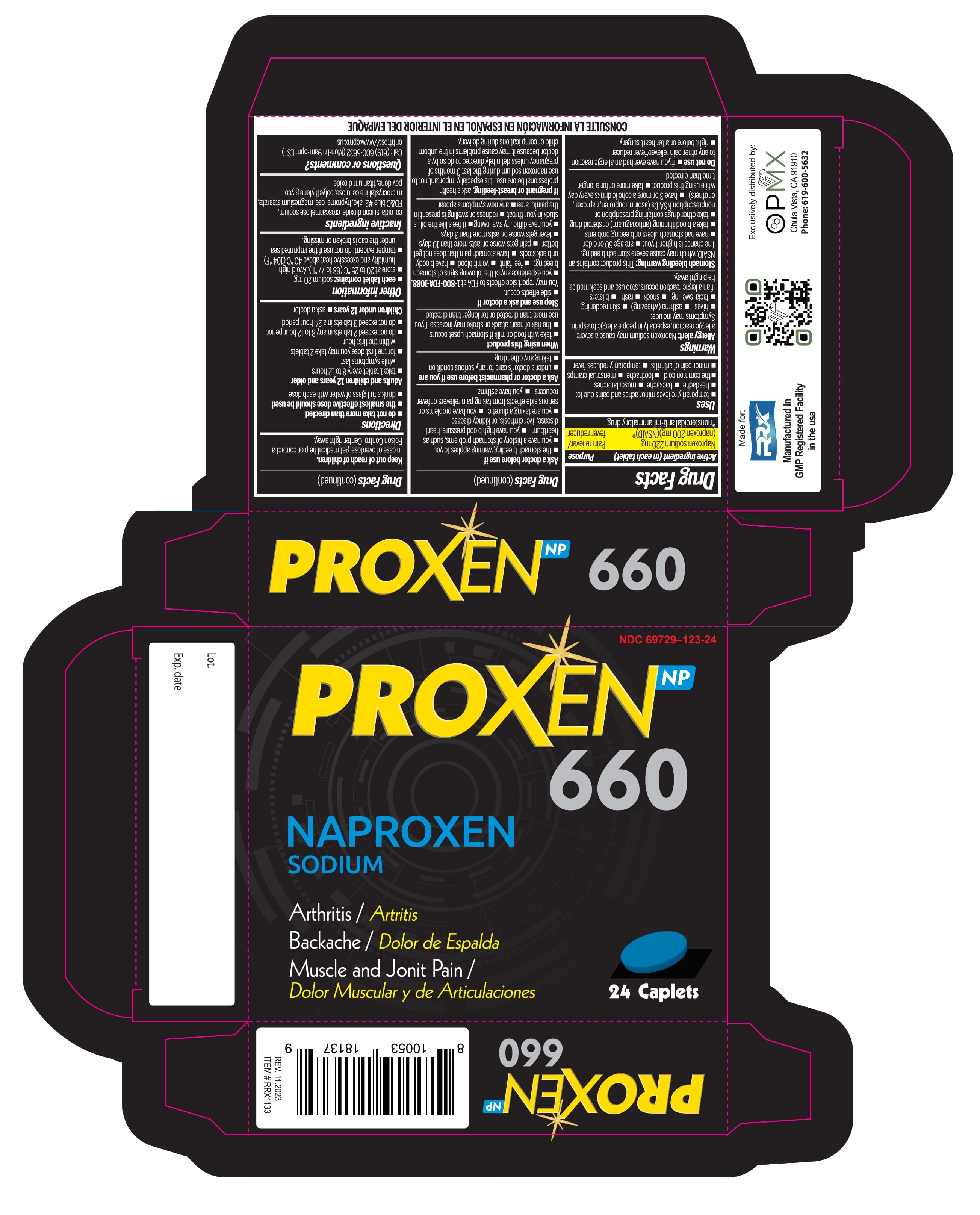The following 2 images provide visual information about the product associated with Proxen Np 660 NDC 69729-123 by Opmx Llc, such as packaging, labeling, and the appearance of the drug itself. This resource could be helpful for medical professionals, pharmacists, and patients seeking to verify medication information and ensure they have the correct product.