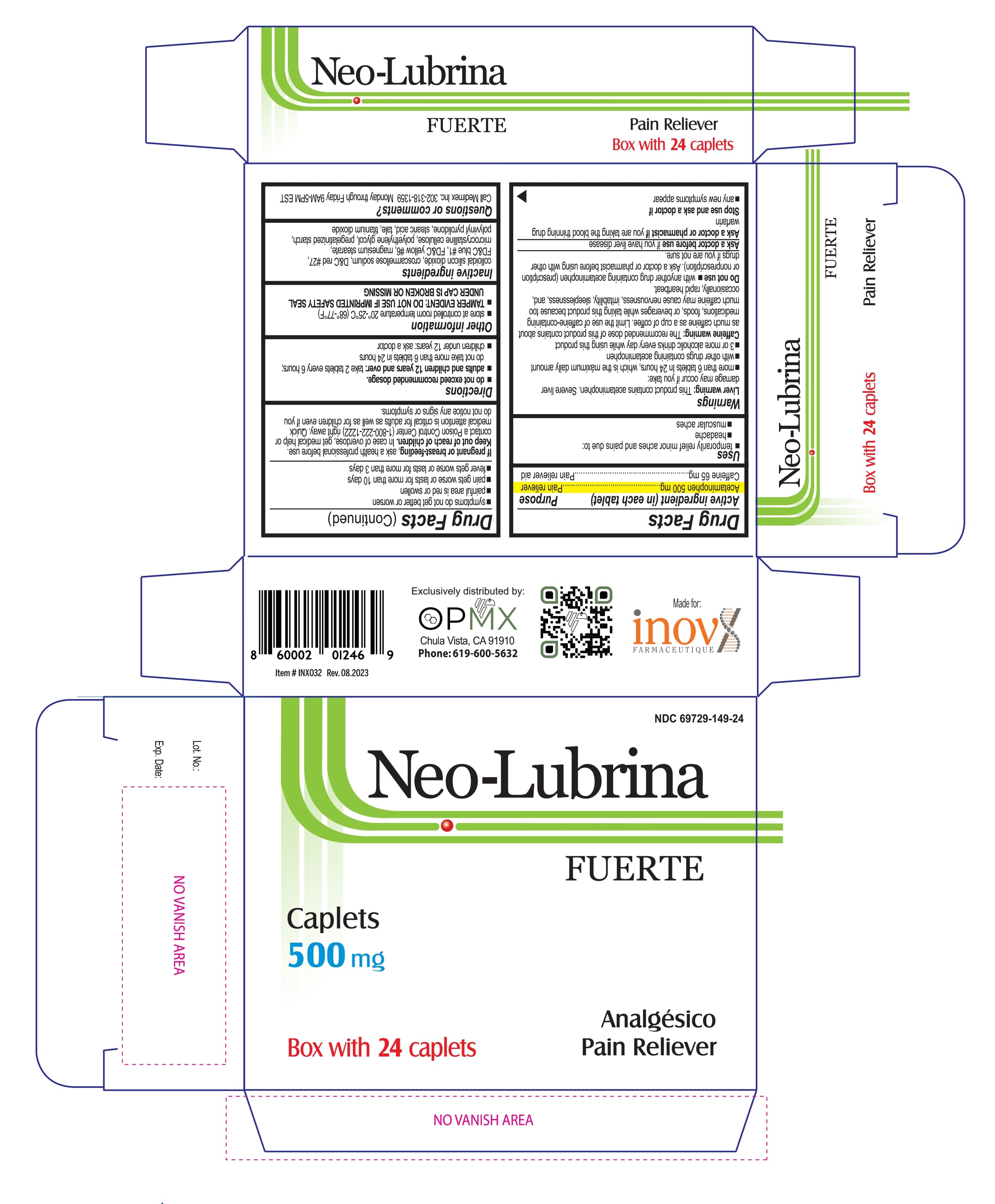 The following image provide visual information about the product associated with Neo-lubrina Fuerte NDC 69729-149 by Opmx Llc, such as packaging, labeling, and the appearance of the drug itself. This resource could be helpful for medical professionals, pharmacists, and patients seeking to verify medication information and ensure they have the correct product.