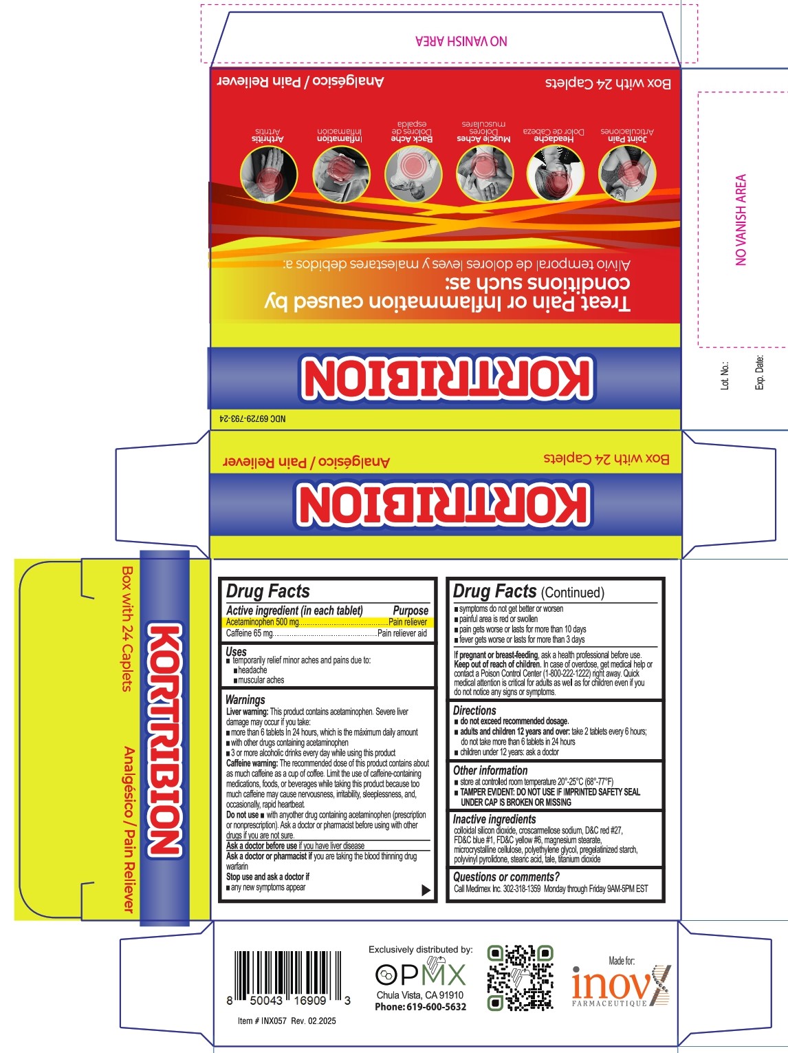 The following image provide visual information about the product associated with Kortribion Pain Reliever NDC 69729-793 by Opmx Llc, such as packaging, labeling, and the appearance of the drug itself. This resource could be helpful for medical professionals, pharmacists, and patients seeking to verify medication information and ensure they have the correct product.