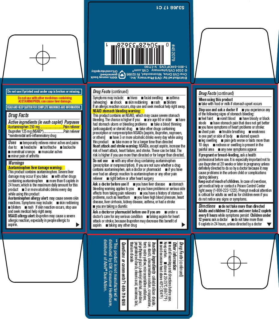 This text provides information about a medication called Dual Action, containing Acetaminophen (250 mg) and Ibuprofen (125 mg) in tablet form. It is a pain reliever that combines these two active ingredients. The medication is available in capsule-shaped tablets.*