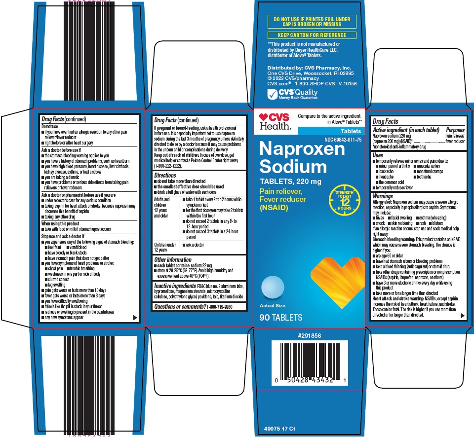 The following image provide visual information about the product associated with Naproxen Sodium NDC 69842-811 by Cvs Pharmacy, such as packaging, labeling, and the appearance of the drug itself. This resource could be helpful for medical professionals, pharmacists, and patients seeking to verify medication information and ensure they have the correct product.