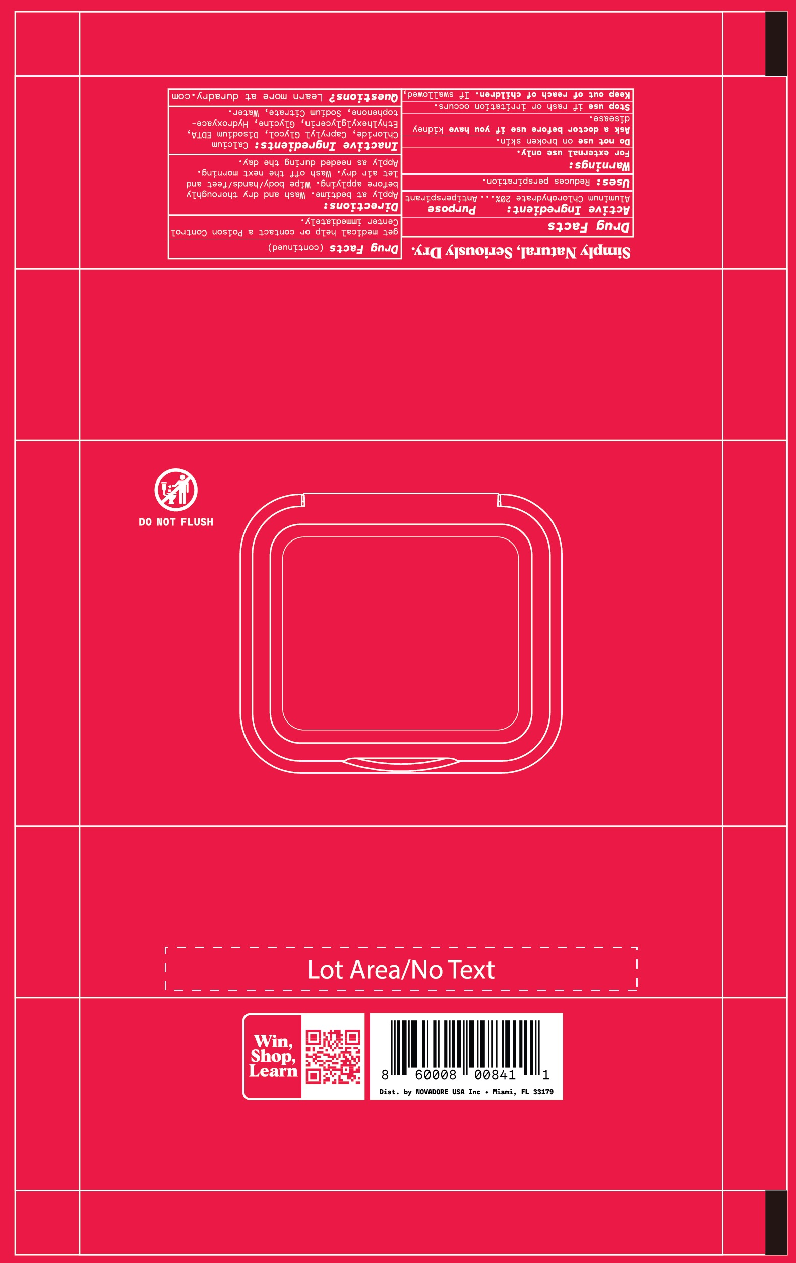 The following image provide visual information about the product associated with Whole Body Antiperspirant Wipes NDC 69990-402 by Novadore Usa Inc, such as packaging, labeling, and the appearance of the drug itself. This resource could be helpful for medical professionals, pharmacists, and patients seeking to verify medication information and ensure they have the correct product.