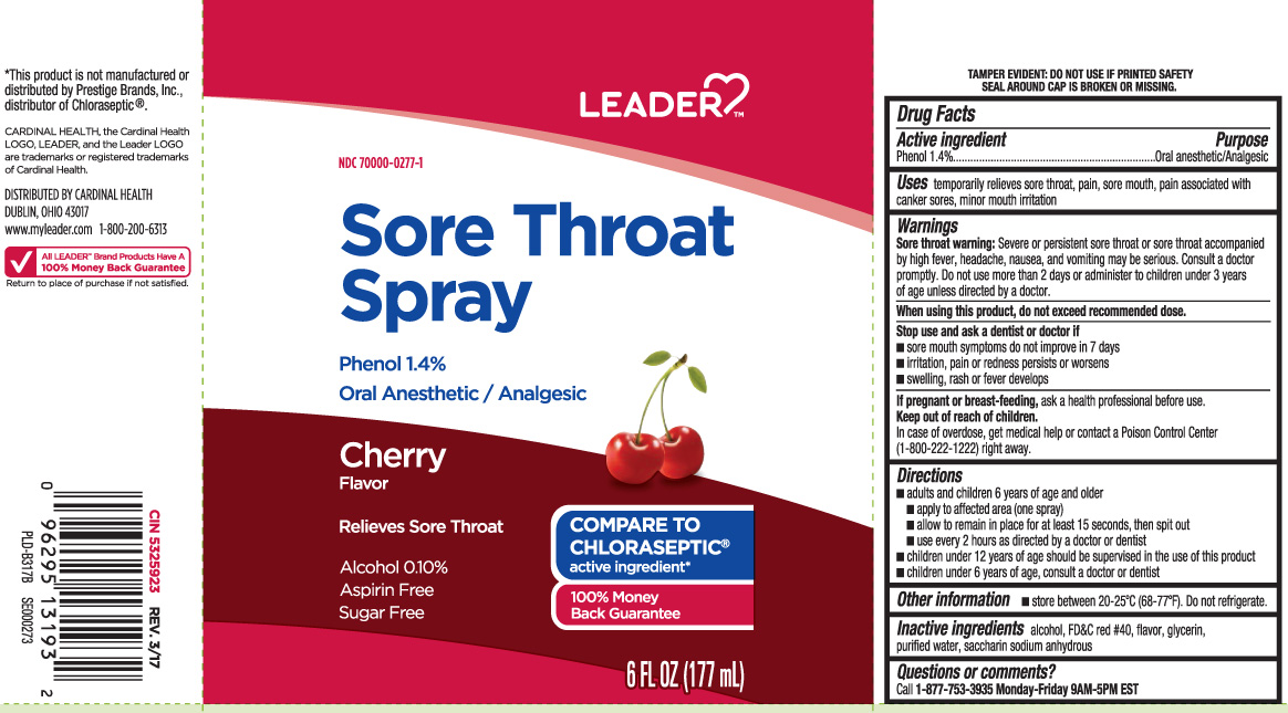 The following image provide visual information about the product associated with Sore Throat Relief Cherry NDC 70000-0277 by Cardinal Health (leader) 70000, such as packaging, labeling, and the appearance of the drug itself. This resource could be helpful for medical professionals, pharmacists, and patients seeking to verify medication information and ensure they have the correct product.