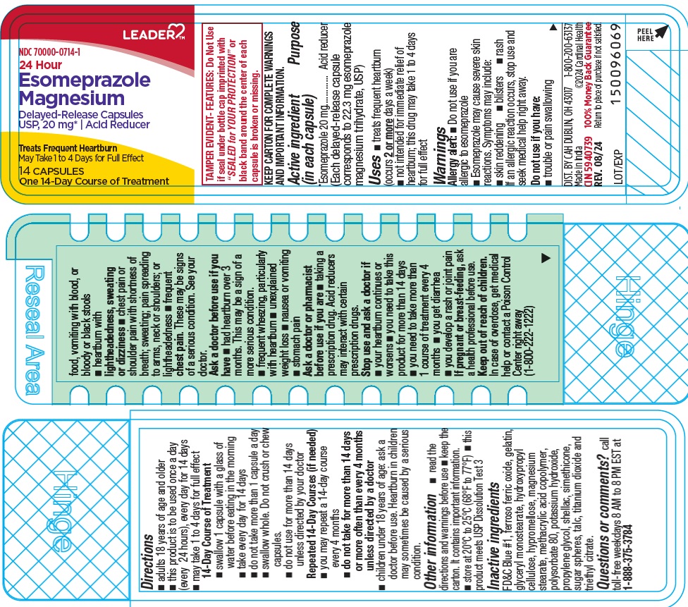 The following 2 images provide visual information about the product associated with Esomeprazole Magnesium NDC 70000-0714 by Leader/ Cardinal Health 110, Inc., such as packaging, labeling, and the appearance of the drug itself. This resource could be helpful for medical professionals, pharmacists, and patients seeking to verify medication information and ensure they have the correct product.