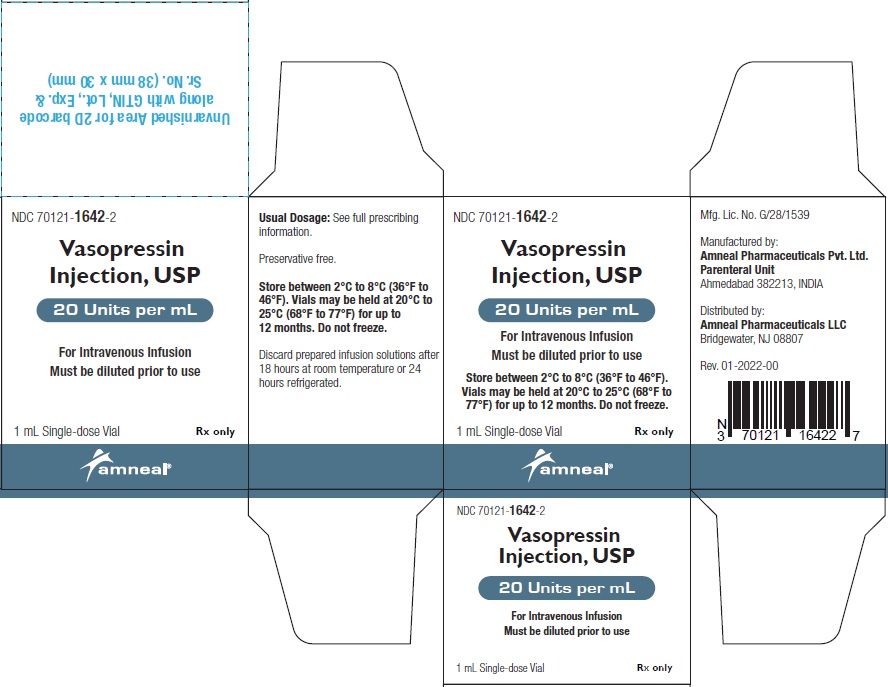 The following 5 images provide visual information about the product associated with Vasopressin NDC 70121-1642 by Amneal Pharmaceuticals Llc, such as packaging, labeling, and the appearance of the drug itself. This resource could be helpful for medical professionals, pharmacists, and patients seeking to verify medication information and ensure they have the correct product.