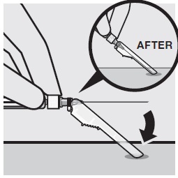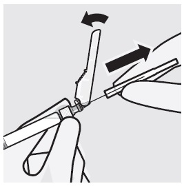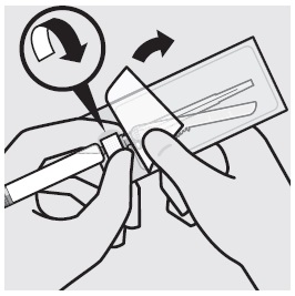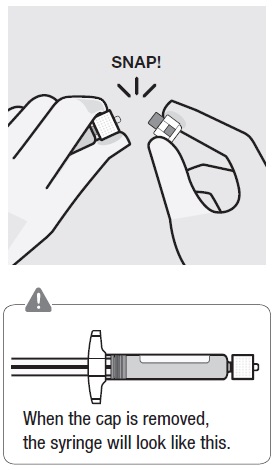 Description: This text provides instructions for removing the vial adapter from a sterile blister when ready to take off the white cap from a prefilled syringe. It is a crucial step in handling medical equipment effectively.*
