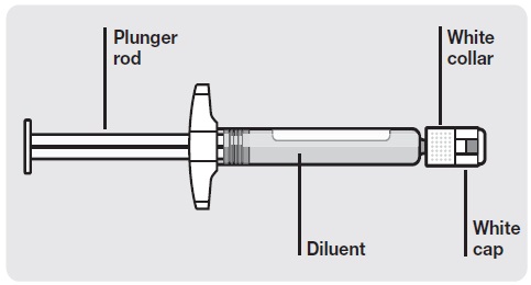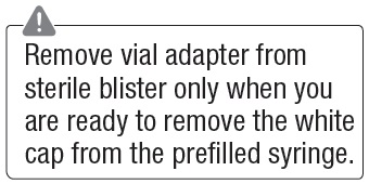 This text provides instructions for using a vial adapter by advising to remove it from the sterile blister only when ready to remove the white cap from the prefilled syringe. It is important to follow these steps to ensure proper usage of the medical device.*