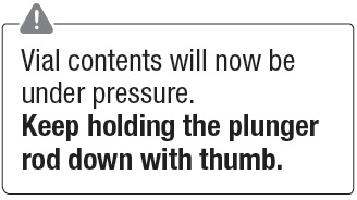 This text provides instructions for maintaining pressure on the plunger rod of a vial to prevent potential spillage or leakage.*