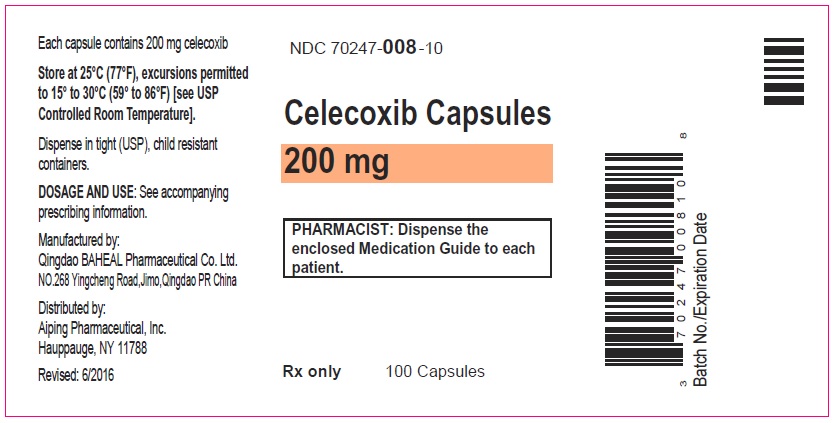 Celecoxib Capsules of 200 mg are contained in each capsule. They are to be stored in child-resistant containers at controlled room temperature not exceeding 30°C (86°F) or going below 15°C (59°F). Dispensing instructions are provided with the accompanying prescribing information for users' guidance. The distribution of the drug is handled by Aiping Pharmaceutical, Inc. in Hauppauge, NY, and it is manufactured by Qingdao BAHEAL Pharmaceutical of Qingdao, PR China. Pharmacists are advised to provide the enclosed medication guide to each patient. However, there is no information available about what the medication is for.*