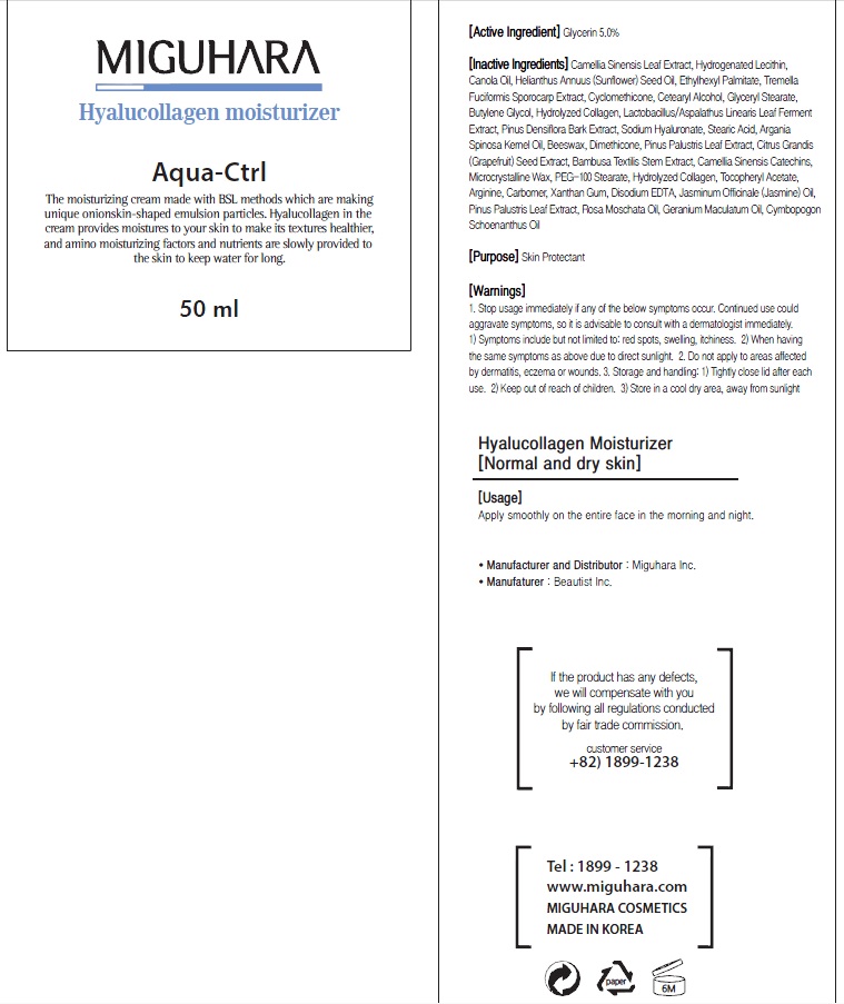 This is a product description for the Hyalucollagen Moisturizer made by MIGUHARA, a Korean cosmetic company. The moisturizer is designed for normal and dry skin, and contains unique onion skin-shaped emulsion particles formed using BSL methods. It is formulated with hyalucollagen to moisturize and improve skin texture, along with a variety of amino moisturizing factors and nutrients that help the skin retain moisture for a longer time. The 50ml container contains various active and connective ingredients, and the cream is meant to be applied smoothly on the entire face in the morning and night. The description also includes warnings for potential side effects, such as swelling and redness, and offers customer service contact information.*