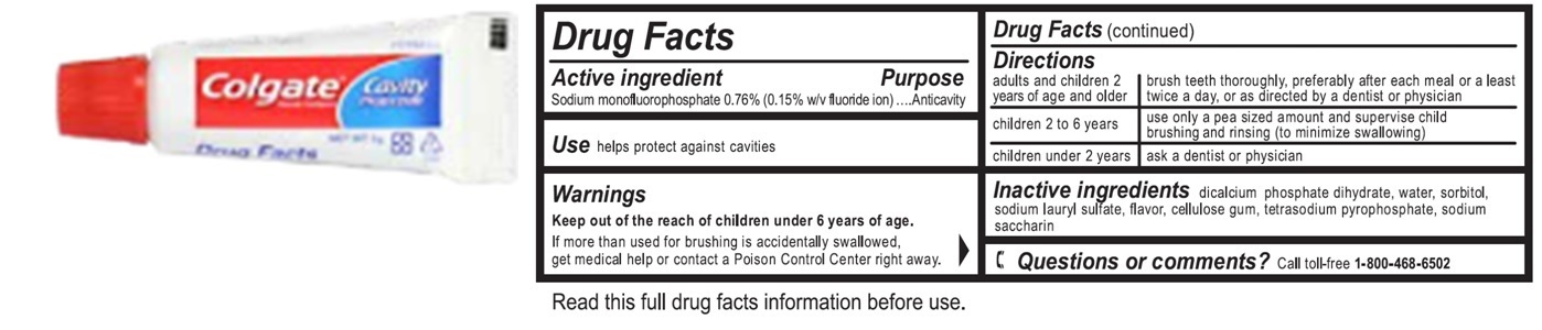 This is a description of a tube of toothpaste manufactured by Colgate-Palmolive in Thailand. The toothpaste, which weighs 59 gm, contains sodium monofluorophosphate with 0.76% active ingredient including 0.15% fluoride ion. The toothpaste is effective in protecting against cavities, and should be used by adults and children aged two years and above. Users should brush their teeth after each meal or at least twice a day or as directed by a dentist or physician. Only a pea-sized amount should be used, and it should be supervised for children while brushing and rinsing. There are warnings provided, such as keeping it out of the reach of children under six years of age and seeking medical attention if more than the prescribed quantity is accidentally swallowed. It also contains several inactive ingredients like water, sorbitol, and tetrasodium pyrophosphate.*