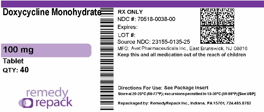 Doxycycline Tablets 100 mg are a peach colored, film coated, round biconvex tablets, debossed with 'I63' on one side and plain on the other side. Each tablet contains doxycycline monohydrate equivalent to 100 mg of doxycycline. They are supplied as follows: