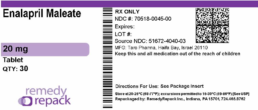 The following 3 images provide visual information about the product associated with Enalapril Maleate NDC 70518-0045 by Remedyrepack Inc., such as packaging, labeling, and the appearance of the drug itself. This resource could be helpful for medical professionals, pharmacists, and patients seeking to verify medication information and ensure they have the correct product.