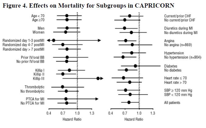- Figure 4. Effects on Mortality for Subgroups in CAPRICORN - carvedilol fig4