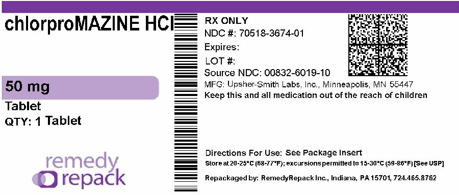 The following 3 images provide visual information about the product associated with Chlorpromazine Hydrochloride NDC 70518-3674 by Remedyrepack Inc., such as packaging, labeling, and the appearance of the drug itself. This resource could be helpful for medical professionals, pharmacists, and patients seeking to verify medication information and ensure they have the correct product.