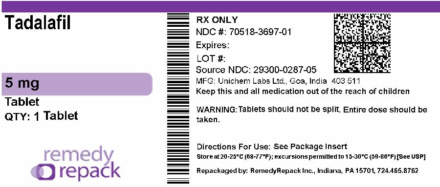 The following 11 images provide visual information about the product associated with Tadalafil NDC 70518-3697 by Remedyrepack Inc., such as packaging, labeling, and the appearance of the drug itself. This resource could be helpful for medical professionals, pharmacists, and patients seeking to verify medication information and ensure they have the correct product.