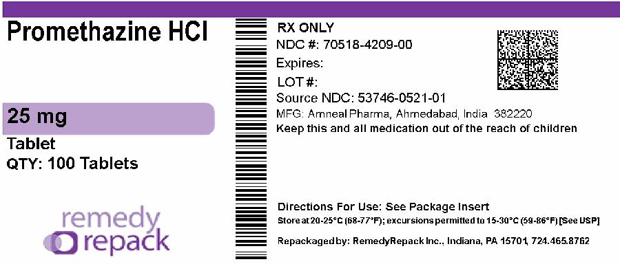 The following 2 images provide visual information about the product associated with Promethazine Hydrochloride NDC 70518-4209 by Remedyrepack Inc., such as packaging, labeling, and the appearance of the drug itself. This resource could be helpful for medical professionals, pharmacists, and patients seeking to verify medication information and ensure they have the correct product.