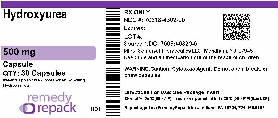 The following 2 images provide visual information about the product associated with Hydroxyurea NDC 70518-4302 by Remedyrepack Inc., such as packaging, labeling, and the appearance of the drug itself. This resource could be helpful for medical professionals, pharmacists, and patients seeking to verify medication information and ensure they have the correct product.