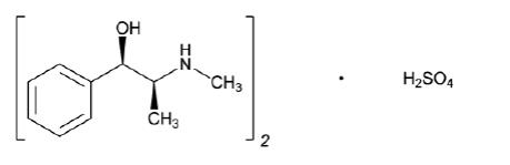 Ephedrine is an alpha- and beta-adrenergic agonist and a norepinephrine-releasing agent. Ephedrine Sulfate Injection, USP is a clear, colorless, sterile solution for intravenous injection. It must be diluted before intravenous administration. The chemical name of ephedrine sulfate is benzenemethanol, α-[1-(methylamino)ethyl]-, [ R-( R*, S*)]-, sulfate (2:1) (salt), and the molecular weight is 428.54 g/mol. Its structural formula is depicted below: