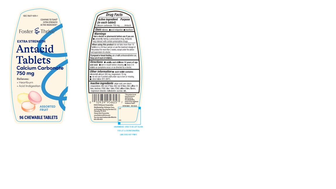 The following image provide visual information about the product associated with Foster And Thrive Extra Strength Antacid 127af Extra Strength Antacid Assorted Fruit NDC 70677-1076 by Strategic Sourcing Services Llc, such as packaging, labeling, and the appearance of the drug itself. This resource could be helpful for medical professionals, pharmacists, and patients seeking to verify medication information and ensure they have the correct product.