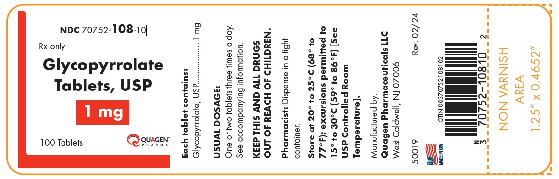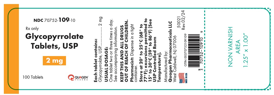 Each Glycopyrrolate tablet USP for oral use contains glycopyrrolate, USP 1 mg, or 2 mg as the active ingredient. The inactive ingredients are dibasic calcium phosphate, lactose monohydrate, magnesium stearate, povidone, and sodium starch glycolate.