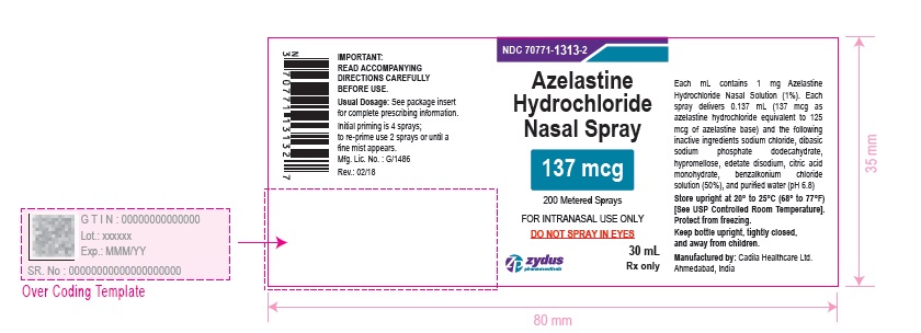 The following image provide visual information about the product associated with Azelastine Hydrochloride NDC 70771-1313 by Zydus Lifesciences Limited, such as packaging, labeling, and the appearance of the drug itself. This resource could be helpful for medical professionals, pharmacists, and patients seeking to verify medication information and ensure they have the correct product.