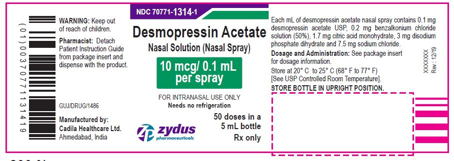 The following image provide visual information about the product associated with Desmopressin Acetate NDC 70771-1314 by Zydus Lifesciences Limited, such as packaging, labeling, and the appearance of the drug itself. This resource could be helpful for medical professionals, pharmacists, and patients seeking to verify medication information and ensure they have the correct product.