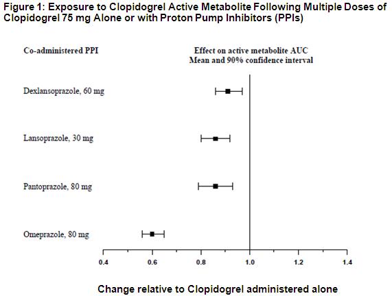 Your doctor may change the medicine you take for stomach acid problems while you take clopidogrel tablets.• you may bruise and bleed more easily• you are more likely to have nose bleeds• it will take longer for any bleeding to stop• unexpected bleeding or bleeding that lasts a long time• blood in your urine (pink, red or brown urine)• red or black stools (looks like tar)• bruises that happen without a known cause or get larger• cough up blood or blood clots• vomit blood or your vomit looks like coffee grounds• chest pain due to heart problems• poor circulation in their legs (peripheral arterial disease)• a heart attack• a stroke• currently have a condition that causes bleeding, such as a stomach ulcer• are allergic to clopidogrel or other ingredients in clopidogrel tablets. See the end of this leaflet for a complete list of ingredients in clopidogrel tablets.• have a history of bowel (gastrointestinal) or stomach ulcers• have a history of bleeding problems• plan to have surgery or a dental procedure. See "How should I take clopidogrel tablets?"• are pregnant or plan to become pregnant. It is not known if clopidogrel will harm your unborn baby• are breastfeeding or plan to breastfeed. It is not known if clopidogrel passes into your breast milk. You and your doctor should decide if you will take clopidogrel tablets or breastfeed. You should not do both without talking to your doctor• have had an allergy or reaction to any medicine used to treat your disease.• aspirin, especially if you have had a stroke. Always talk to your doctor about whether you should take aspirin along with clopidogrel to treat your condition.• Non-steroidal anti-inflammatory drugs (NSAIDs). Ask your doctor or pharmacist for a list of NSAID medicines if you are not sure.• warfarin (Coumadin®, Jantoven®)• selective serotonin reuptake inhibitors (SSRIs) and serotonin norepinephrine reuptake inhibitors (SNRIs). Ask your doctor or pharmacist for a list of SSRI or SNRI medicines if you are not sure.• Take clopidogrel tablets exactly as your doctor tells you.• Do not change your dose or stop taking clopidogrel tablets without talking to your doctor first. Stopping clopidogrel tablets may increase your risk of heart attack or stroke.• Take clopidogrel tablets with aspirin as instructed by your doctor.• If you miss a dose, take clopidogrel tablets as soon as you remember. If it is almost time for your next dose, skip the missed dose. Take the next dose at your regular time. Do not take 2 doses of clopidogrel tablets at the same time unless your doctor tells you to.• If you take too much clopidogrel, call your doctor or go to the nearest emergency room right away.• Talk with your doctor about stopping your clopidogrel tablets before you have surgery. Your doctor may tell you to stop taking clopidogrel tablets at least 5 days before you have surgery to avoid excessive bleeding during surgery.• See "What is the most important information I should know about clopidogrel tablets?"• A blood clotting problem called Thrombotic Thrombocytopenic Purpura (TTP). TTP can happen with clopidogrel, sometimes after a short time (less than 2 weeks). TTP is a blood clotting problem where blood clots form in blood vessels; and can happen anywhere in the body. TTP needs to be treated in a hospital right away, because it may cause death. Get medical help right away if you have any of these symptoms and they can not be explained by another medical condition:• purplish spots (called purpura) on the skin or in the mouth (mucous membranes) due to bleeding under the skin• your skin or the whites of your eyes are yellow (jaundice)• you feel tired or weak• your skin looks very pale• fever• fast heart rate or feeling short of breath• headache• speech changes• confusion• coma• stroke• seizure• low amount of urine, or urine that is pink or has blood in it• stomach area (abdominal) pain• nausea, vomiting, or diarrhea• vision changes