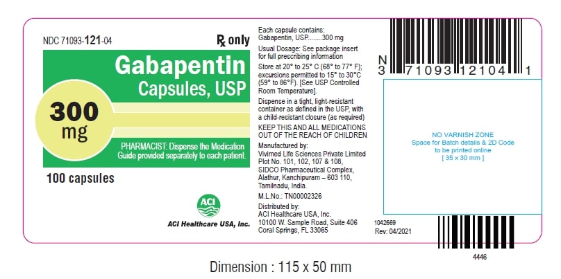 Gabapentin is a medication available in capsule form with a strength of 400mg and the National Drug Code (NDC) 71093-121-04. The package includes 100 capsules to be stored at room temperature. The medication is manufactured by SIDCO Pharmaceutical Complex and distributed by ACH Healthcare USA, Inc. There is additional information provided separately for each patient.*