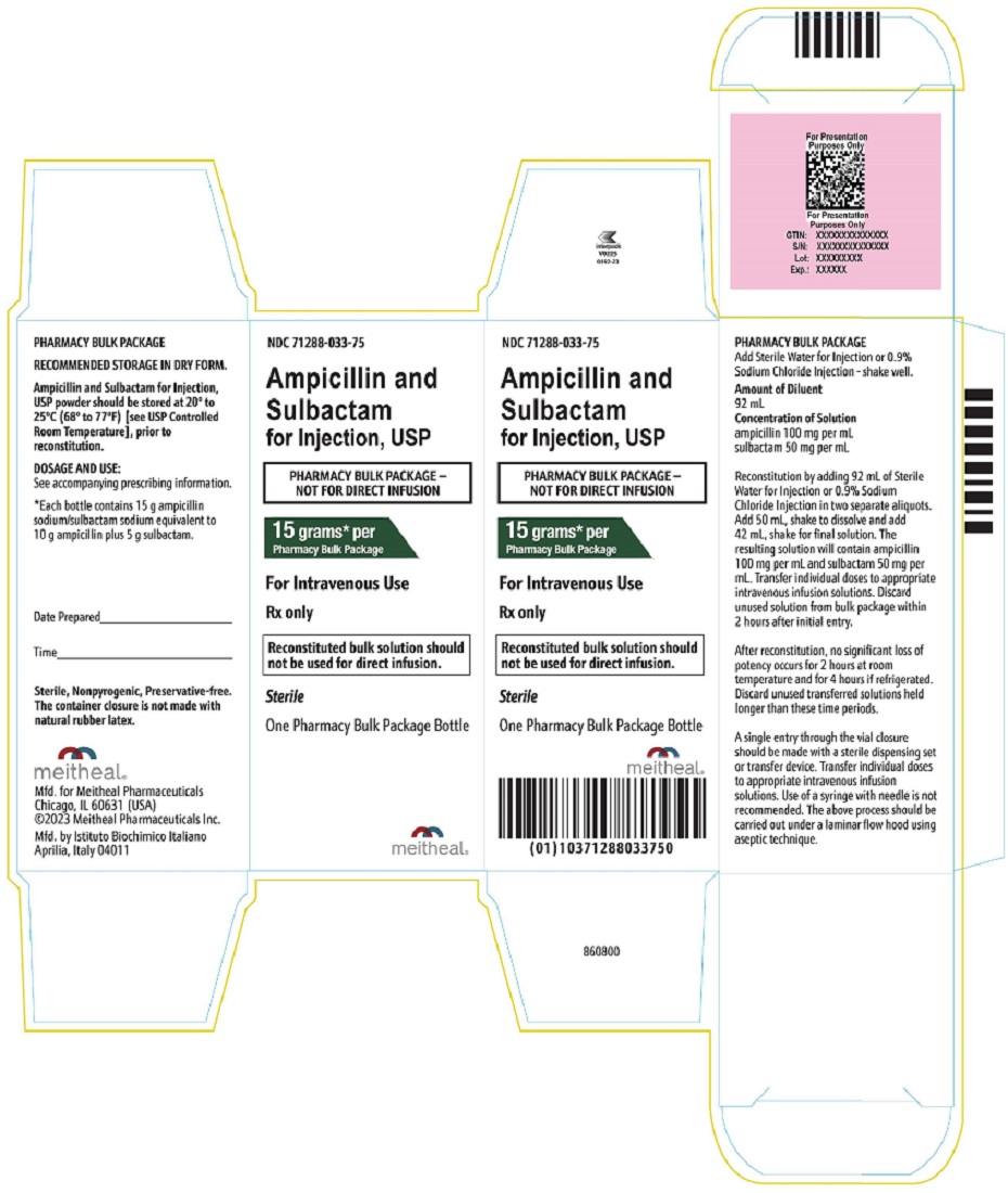 Each sterile Pharmacy Bulk Package contains 15 grams Ampicillin and Sulbactam for Injection (equivalent to 10 g ampicillin as the sodium salt plus 5 g sulbactam as the sodium salt). The sodium content per vial is 1150 mg (50 mEq) sodium. Ampicillin and Sulbactam for Injection Pharmacy Bulk Package is a vial containing a sterile preparation of ampicillin sodium and sulbactam sodium for parenteral use that contains many single doses. The Pharmacy Bulk Package is for use in a pharmacy admixture setting; it provides many single doses of ampicillin and sulbactam for injection for addition to suitable parenteral fluids in the preparation and administration for intravenous infusion (see DIRECTIONS FOR PROPER USE OF PHARMACY BULK PACKAGE section). FURTHER DILUTION IS REQUIRED BEFORE USE.