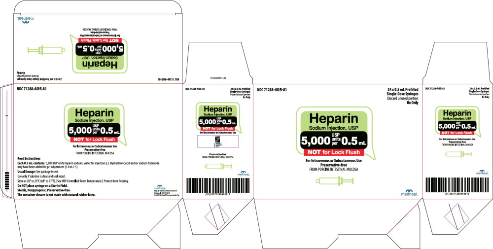 This is a description of a pharmaceutical product that is intended for intravenous or subcutaneous use, and comes in a prefilled single-dose syringe of 0.5 mL. The product is derived from porcine intestinal mucosa and is free of preservatives. The manufacturer is Meitheal Pharmaceuticals, and its National Drug Code (NDC) is 71288-405-80, and it's available by prescription only. The product is labeled as containing garm 5,000 (unspecified ingredient), with a mention of USP units per 5 mL, but the complete text is not available.*