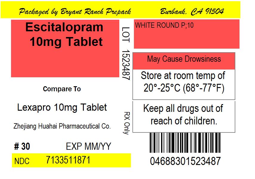 The following 2 images provide visual information about the product associated with Escitalopram NDC 71335-1187 by Bryant Ranch Prepack, such as packaging, labeling, and the appearance of the drug itself. This resource could be helpful for medical professionals, pharmacists, and patients seeking to verify medication information and ensure they have the correct product.