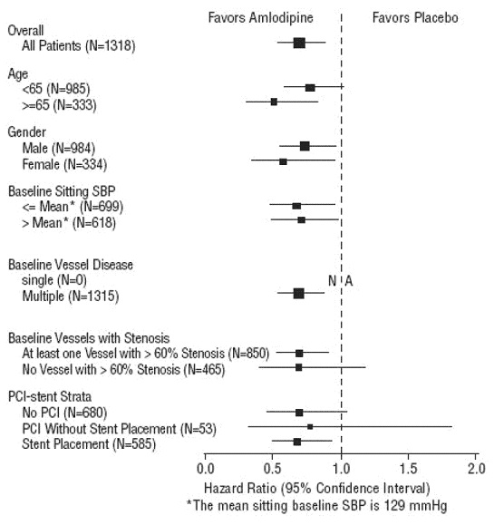 - Kaplan-Meier Analysis of Composite Clinical Outcomes for amlodipine versus Placebo Kaplan-Meier Analysis of Composite Clinical Outcomes for amlodipine versus Placebo Figure-02 - 29d19981 1b28 4824 835b 729881d05ef3 02