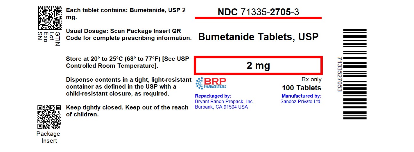 The following 2 images provide visual information about the product associated with Bumetanide NDC 71335-2705 by Bryant Ranch Prepack, such as packaging, labeling, and the appearance of the drug itself. This resource could be helpful for medical professionals, pharmacists, and patients seeking to verify medication information and ensure they have the correct product.