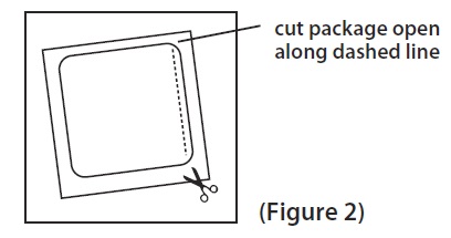 This instruction indicates to cut open the package along the dashed line as shown in Figure 2.*
