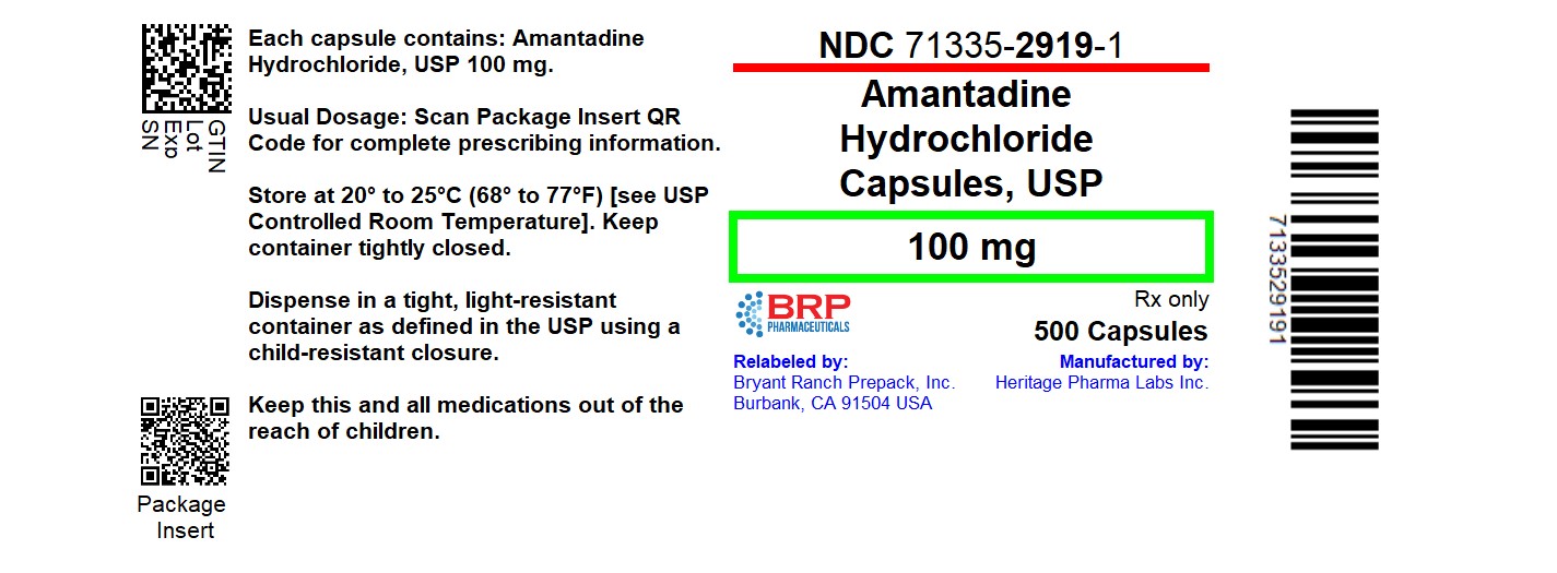 The following 2 images provide visual information about the product associated with Amantadine Hydrochloride NDC 71335-2919 by Bryant Ranch Prepack, such as packaging, labeling, and the appearance of the drug itself. This resource could be helpful for medical professionals, pharmacists, and patients seeking to verify medication information and ensure they have the correct product.