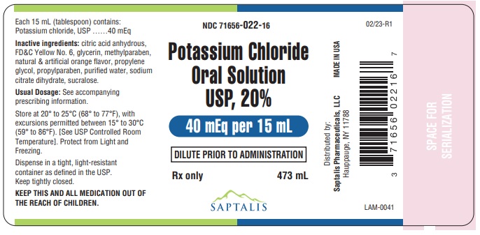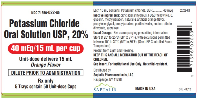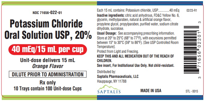 The following 11 images provide visual information about the product associated with Potassium Chloride NDC 71656-022 by Saptalis Pharmaceuticals, Llc, such as packaging, labeling, and the appearance of the drug itself. This resource could be helpful for medical professionals, pharmacists, and patients seeking to verify medication information and ensure they have the correct product.
