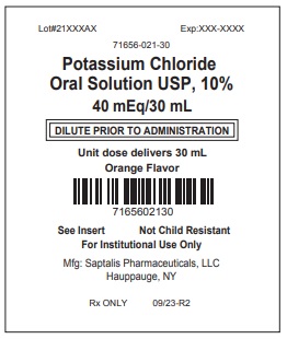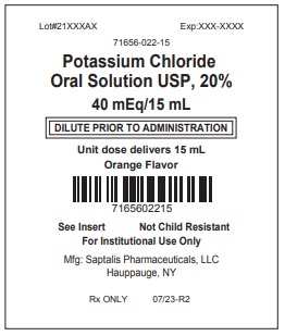 This is a description for a potassium chloride oral solution. It is a 20% solution with a concentration of 40 mEqg/15 mL. The solution is delivered in unit doses of 15 mL, and it has an orange flavor. It is intended for institutional use only and is manufactured by Saptals Pharmaceuticals LLC in Hauppauge, NY.*