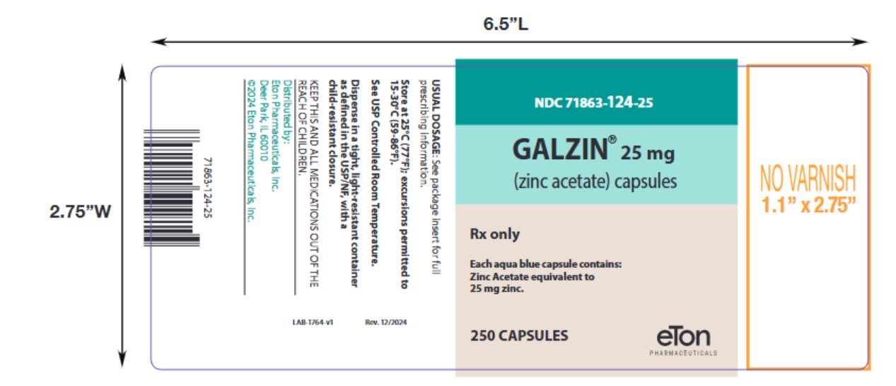 The following 4 images provide visual information about the product associated with Galzin NDC 71863-124 by Eton Pharmaceuticals, Inc., such as packaging, labeling, and the appearance of the drug itself. This resource could be helpful for medical professionals, pharmacists, and patients seeking to verify medication information and ensure they have the correct product.