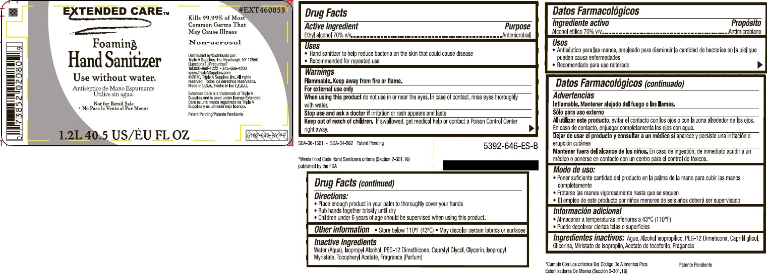 The following image provide visual information about the product associated with Extended Care Foaming Hand Sanitizer NDC 71875-800 by Triple A Supplies, Inc., such as packaging, labeling, and the appearance of the drug itself. This resource could be helpful for medical professionals, pharmacists, and patients seeking to verify medication information and ensure they have the correct product.