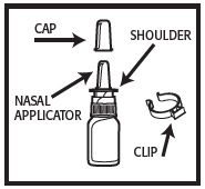 Step 8. Wipe the nasal applicator with a clean tissue and replace the plastic cap and clip (see Figure D). | Figure D |