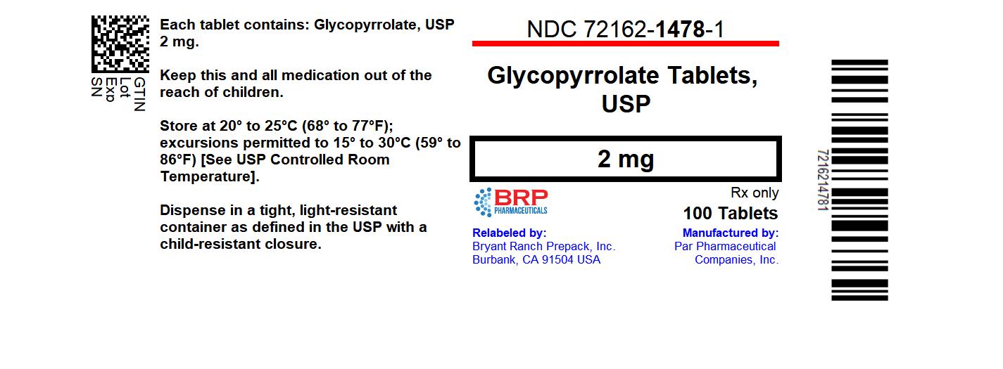 The following 2 images provide visual information about the product associated with Glycopyrrolate NDC 72162-1478 by Bryant Ranch Prepack, such as packaging, labeling, and the appearance of the drug itself. This resource could be helpful for medical professionals, pharmacists, and patients seeking to verify medication information and ensure they have the correct product.