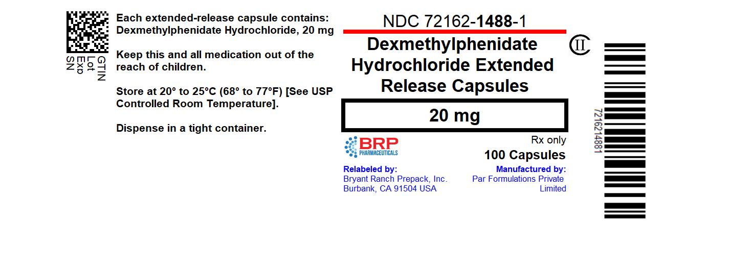 The following 3 images provide visual information about the product associated with Dexmethylphenidate Hydrochloride NDC 72162-1488 by Bryant Ranch Prepack, such as packaging, labeling, and the appearance of the drug itself. This resource could be helpful for medical professionals, pharmacists, and patients seeking to verify medication information and ensure they have the correct product.