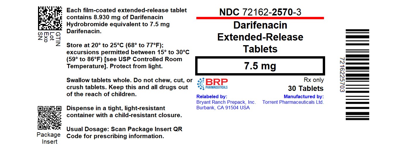 The following 8 images provide visual information about the product associated with Darifenacin NDC 72162-2570 by Bryant Ranch Prepack, such as packaging, labeling, and the appearance of the drug itself. This resource could be helpful for medical professionals, pharmacists, and patients seeking to verify medication information and ensure they have the correct product.