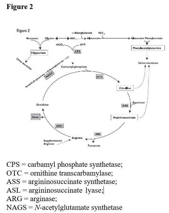 Adverse reactions were reported with similar frequency in patients with OTC, ASS, CPS, and diagnoses categorized as "other." Nervous system disorders were more frequent in patients with OTC and CPS, compared with patients with ASS and patients with "other" diagnoses. Convulsions and mental impairment were reported in patients with OTC and CPS. These observations are consistent with literature reports that patients with enzyme deficiencies occurring earlier in the urea cycle (i.e., OTC and CPS) tend to be more severely affected.